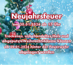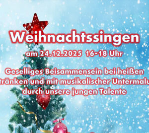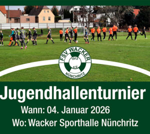 Was ist los in der Gemeinde Nünchritz Events und Veranstaltungen Dezember 2025 Singe fröhlich im Advent 19 Dez. 19:30 - 20:15 Kirche Glaubitz Weihnachtssingen – Feuerwehr Leckwitz 24 Dez. 16:00 - 18:00 X-MAS Party im Bunker Nünchritz 25 Dez. Bunker NünchritzFriedrich-von-Heyden-Platz, 01612 Nünchritz Januar 2026 Jugendhallenturnier Fußball 04 Jan. 9:00 Wacker-Sporthalle NünchritzGartenstraße 2, 01612 Nünchritz Neujahrsfeuer – Feuerwehr Leckwitz 30 Jan. 17:00 Feuerwehr LeckwitzElbweg 5a, Nünchritz OT Leckwitz Keine Veranstaltung gefunden!